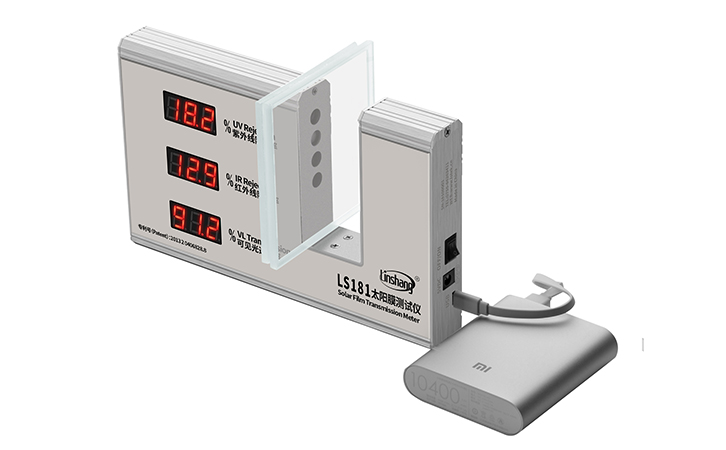 林上厂家供应LS181太阳膜测试仪,适用于汽车窗膜透光率检测和紫外线红外线阻隔率测试,平行光路设计,测试数据不受样品放置位置影响,是一款高精度的汽车膜检测仪。LS181太阳膜测试仪的测试原理是采用紫外光源,可见光源和红外光源照射被测透明物质,感应器分别探测三种光源的入射光强和透过被测透明物质后的光强,透过光强与入射光强的比值即为透过率,用百分数表示。大多数的太阳膜,可见光标注透过率指标,红外线和紫外线标注阻隔率指标,阻隔率=100%-透过率。LS181太阳膜测试仪直接测量和显示紫外线的阻隔率,红外线的阻隔率和可见光透过率,方便读数和理解。