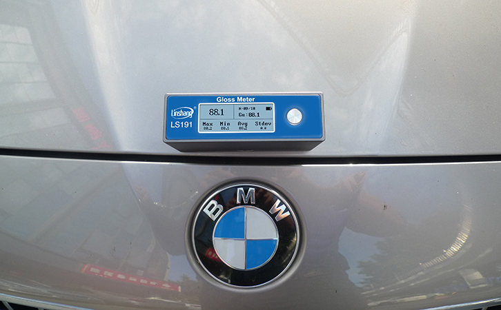 可使用LS191车漆光泽度测试仪对三种保养方法的光泽度进行检测对比,可明显看出差别。林上LS191车漆光泽度测试仪可轻易检测出三种保养方法的光泽度,仪器的操作方法非常简单,开机之后直接把仪器放到车漆表面,数据即测即出,光泽度测试仪会可通过所保存的数据自动计算出标准差值,这个值是用于判断光泽度均匀性的,标准差值越小,光泽度越均匀。