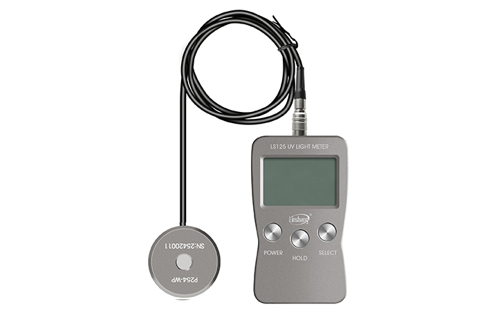 LS125+P254-WP紫外辐射照度计采用的是防水的数字探头,其防水的深度可达1m,功率最大可测200000 uW/cm2,仪器采用插拔式设计,并且探头背附磁力可吸附在铁板上,方便固定。为了防止其他光线的干扰,我们将信号放大的部分放入探测器的金属盒里还使用了带补正滤光镜的专用检测探头。仪器可保存9组测量数据,且关机后数据依然保存。